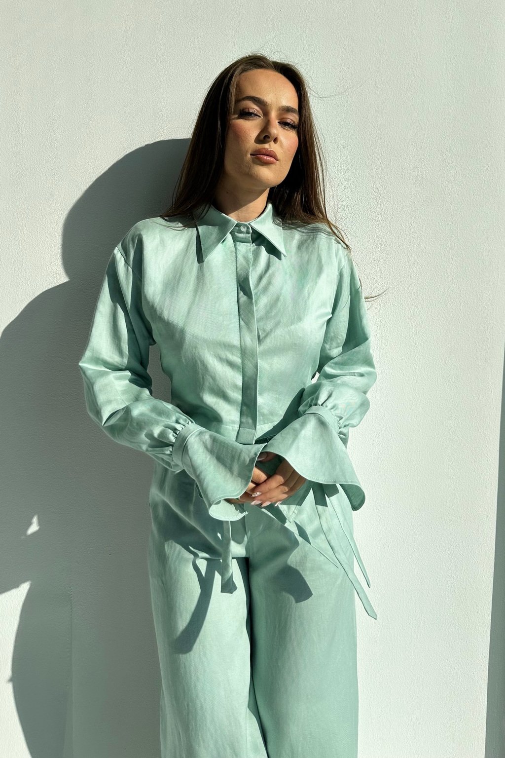 CAVA Linen Shirt with Bell Sleeves, made of a thin & soft Linen blend in Mint color